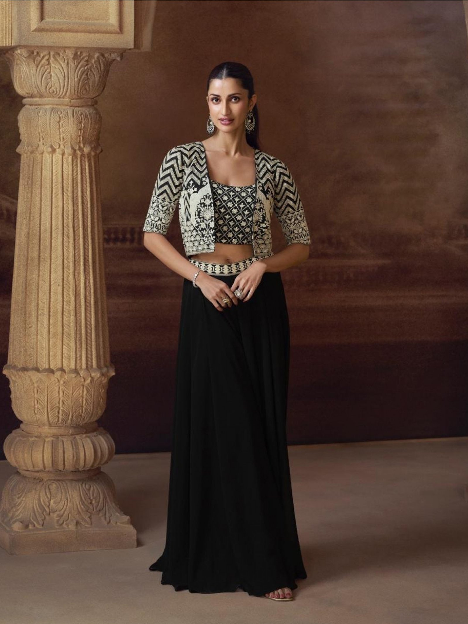 Fabric Detail: Top Fabric: Pure Chinon Silk |Bottom: Pure Chinon Silk | Jacket: Pure Chinon Silk
