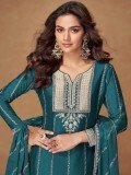 Pure Chinon Silk Party Wear Sharara In Teal Color with Embroidery Work