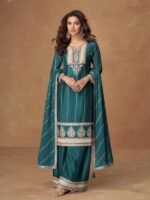 Be the first to review “Pure Chinon Silk Party Wear Sharara In Teal Color with Embroidery Work”