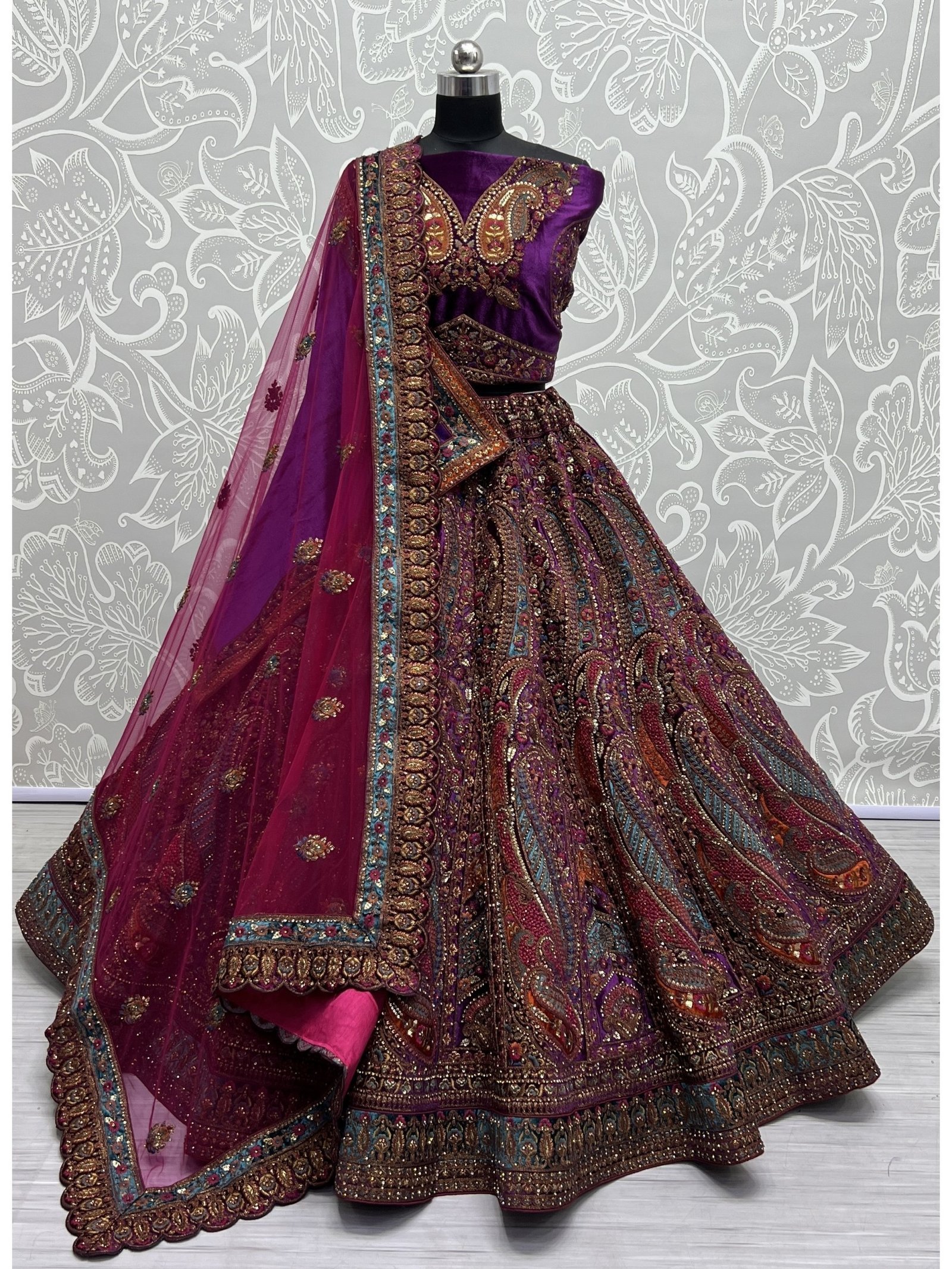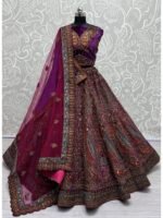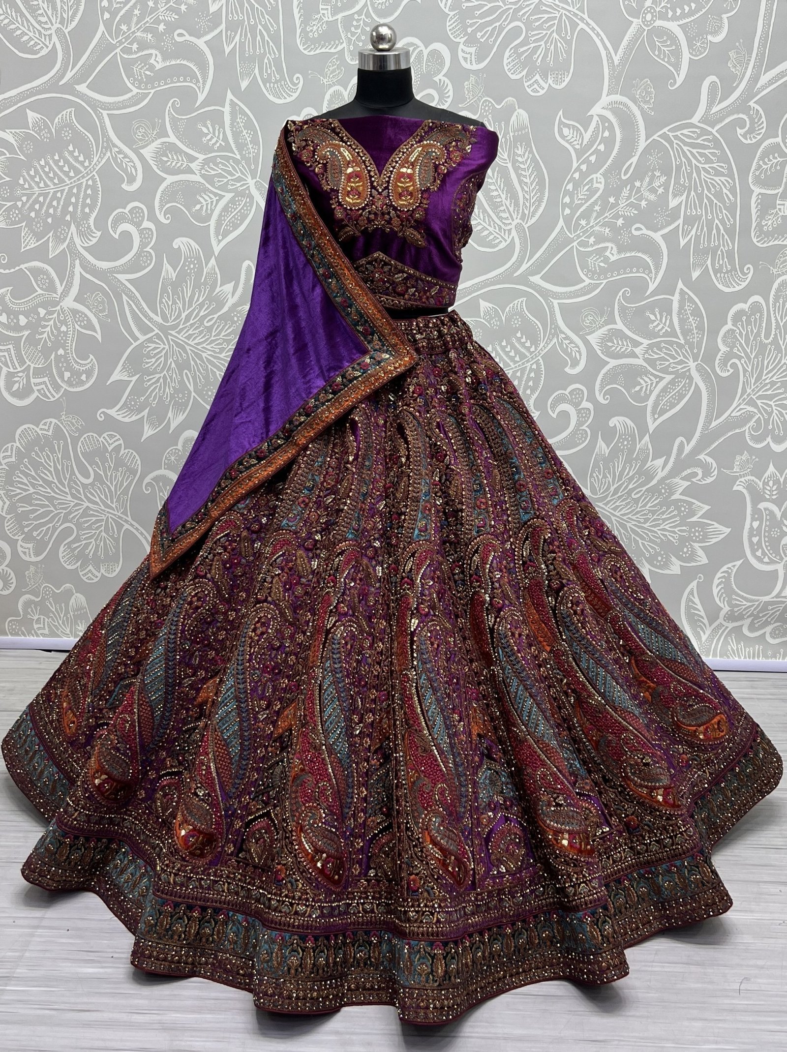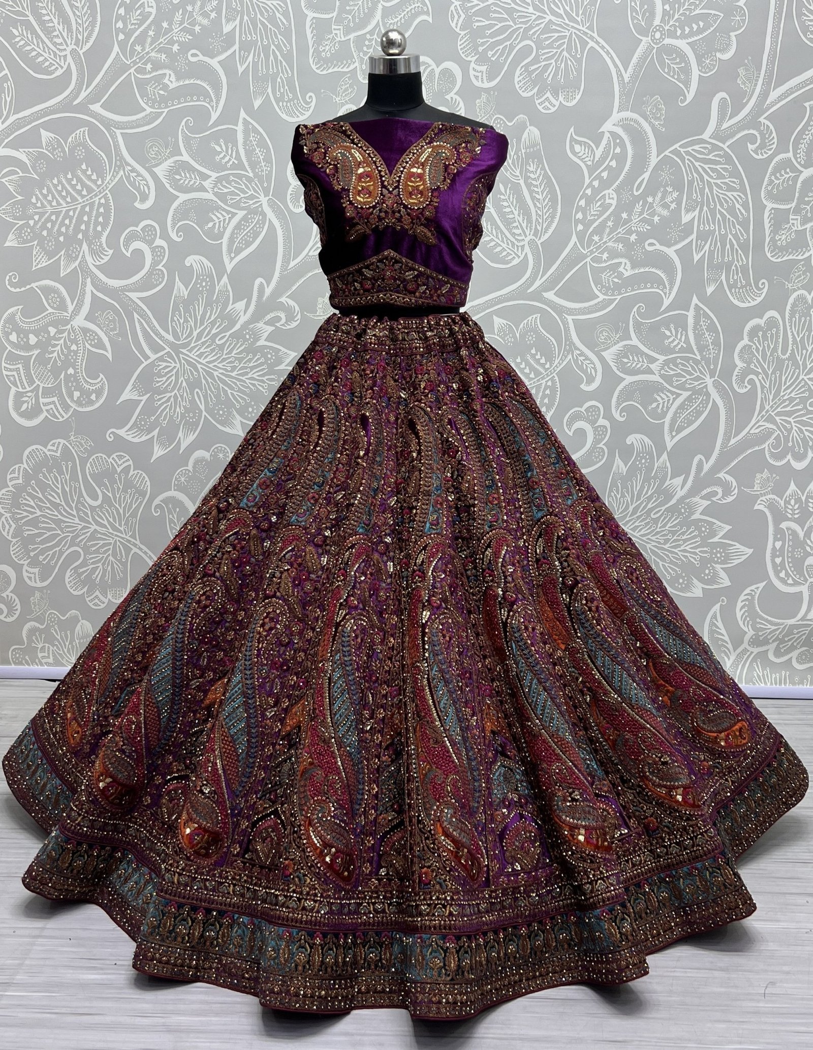 Pure Micro Velvet Bridal Wear Lehenga In Purple Color With Embroidery Work