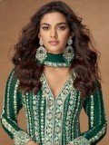 Real Chinon Silk Party Wear Gown In Green Color with Embroidery Work