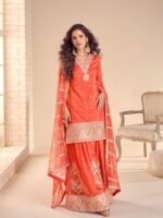 Be the first to review “Real Simar Silk Party Wear Sharara Orange Color with Embroidery Work”